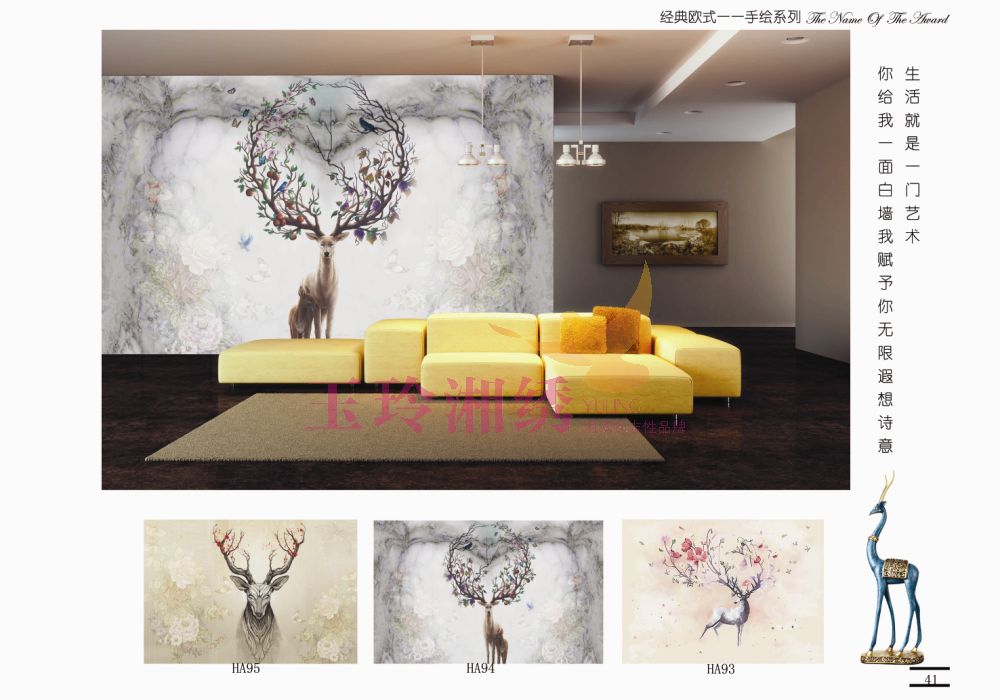 福禄寿湘绣画,客厅湘绣装饰画,地中海混搭风格湘绣画